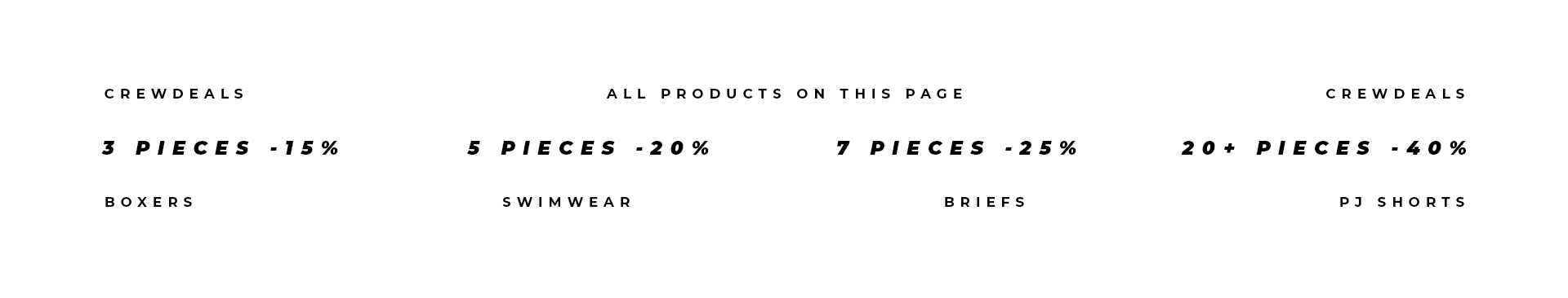 We got you and your team covered. If you order more than 3 items, the discounts start piling up. This goes for boxers, briefs, swimwear and pj shorts. Mixing and matching is totally allowed and even encouraged!